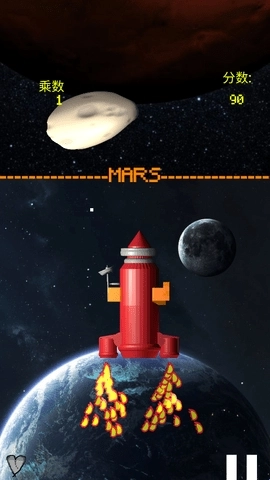 2、通过左右快速移动来避开太空中的陨石,与此同时还要收集金币,这些金币能够用于火箭的建造、维修以及升级。