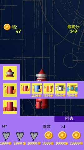 3、攒够足够多的金币后,就可以着手改造你的火箭啦,快一起来瞧瞧,打造出一枚强大的火箭吧。