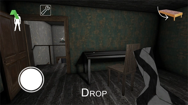 3、推开大门走进房间,若看到老奶奶,可点击右上角的桌子图标,这样就能藏到桌子底下了。