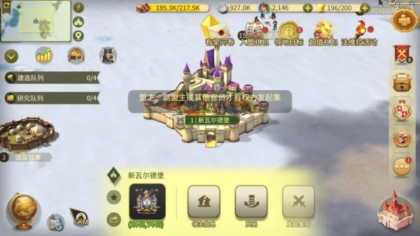 在确定好目标之后,由盟主或者副盟主来发起攻城集结,联盟成员需要派遣军队前往参与。每个成员最多能够向集结的军团输送5支部队,而参与集结的联盟成员最多可以有50名。发起集结的时候可以设置集结时间,这个时间可以在1到30分钟的范围内进行选择,等集结时间结束,集结起来的军团就会朝着目标城市移动。