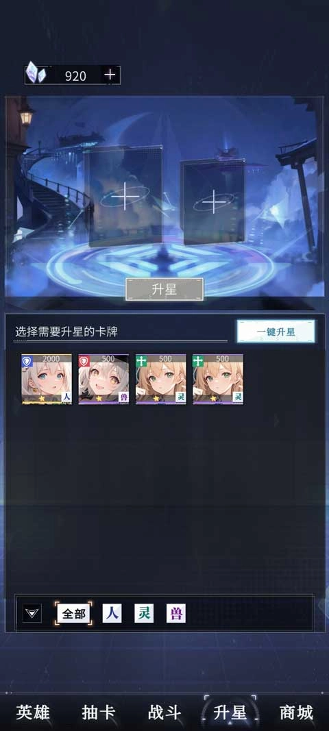 这个时候玩家就能得到R级、SR级、SSR级的人、灵、兽三类卡牌。
