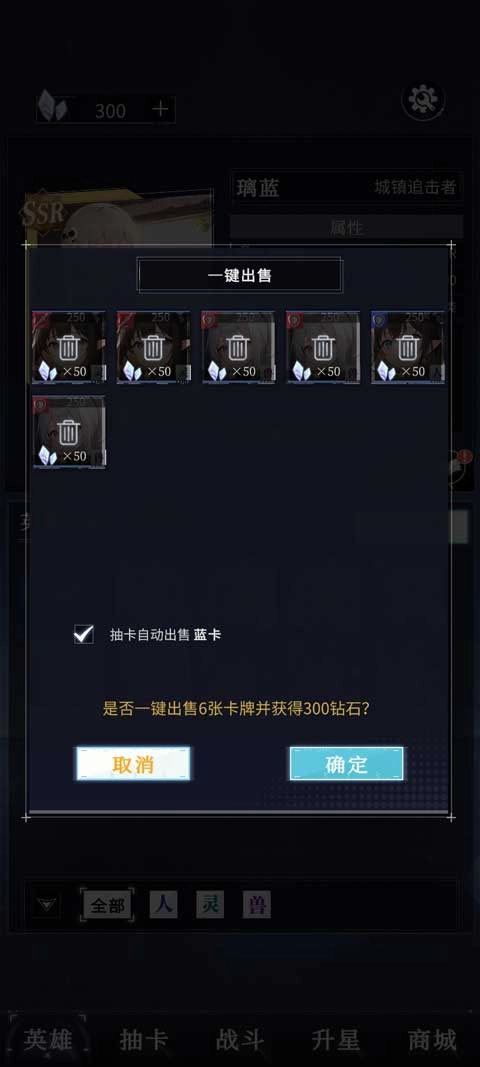 玩家可以把自己手中的英雄卡牌按照等级出售,等级越高的卡牌,能换取的钻石数量就越多。