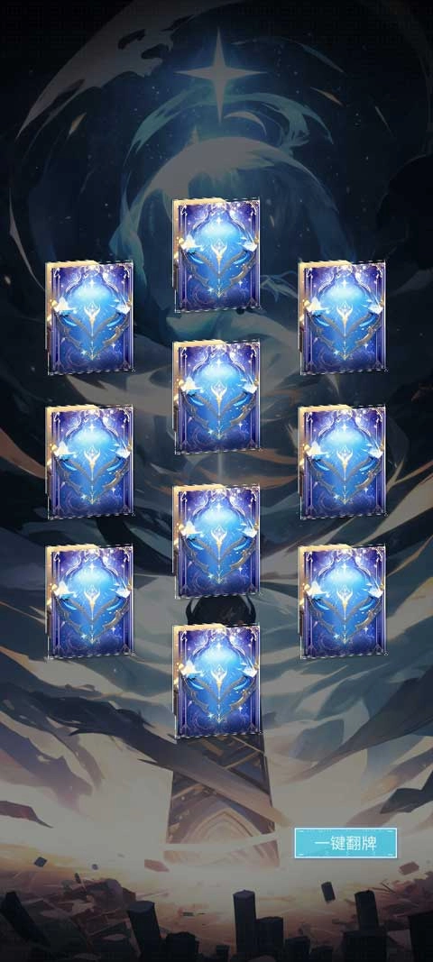 祈愿结束后便会进入翻牌界面,点击“一键翻牌”按钮即可翻开所有卡牌。