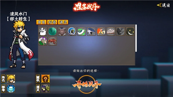 3、接着选择一个忍者,像鸣人这类的都可以,再搭配好秘卷和通灵,就能够开启战斗了。