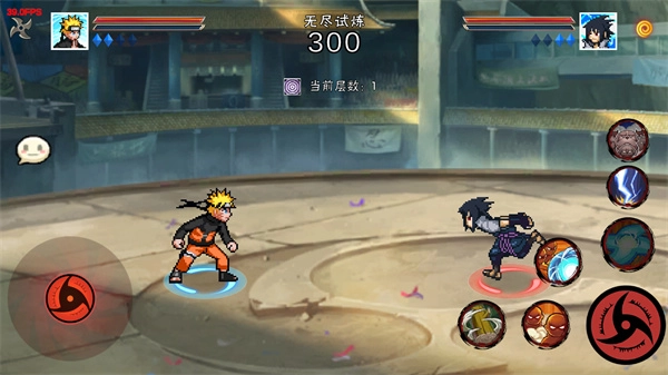 3、角色的移动由左下角的虚拟按键控制,而右侧设有多个可供使用的忍术。