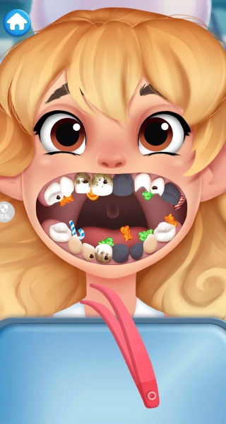进入游戏后,使用镊子仔细清理牙齿上的所有糖果,确保不遗漏任何角落。