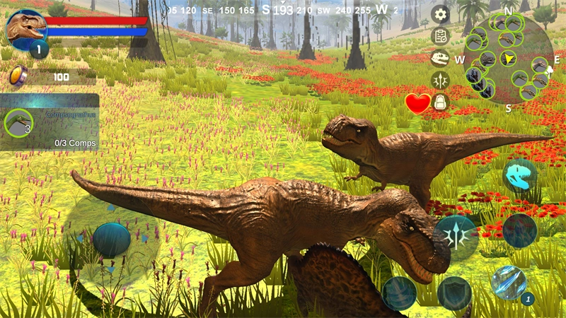 通过享用恐龙肉和饮用水来保持健康与精力,去探索广袤的世界,还能和其他恐龙战斗从而让自己变得更强壮。
