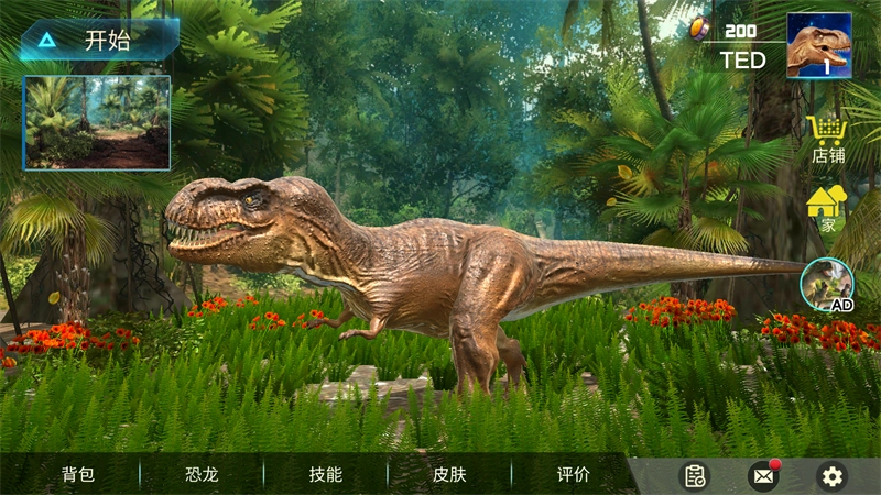 2、接下来我们可以正式进入游戏,然后可以选择背包、恐龙、技能、皮肤等多个选项进行查看。