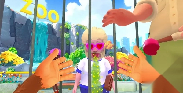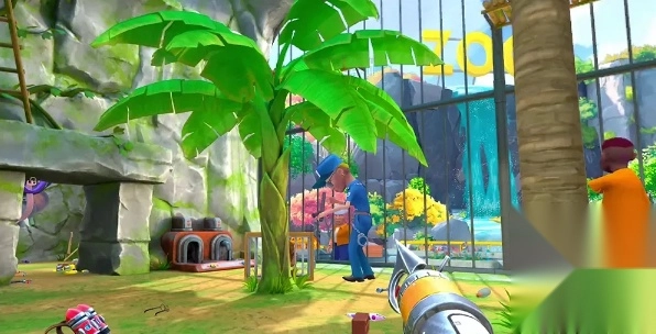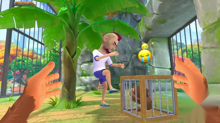 《我是猴子》(I Am Monkey)打造了物理驱动的沉浸式交互体验:玩家能攀爬跳跃、抓着藤蔓摆荡、投掷香蕉,还能偷偷拿走游客手里的东西。游戏场景采用沙盒设计,支持玩家自由探索和即兴互动——像是用树枝撬开饲料箱偷拿食物,或是在下雨天故意滑倒逗得游客发出惊呼。