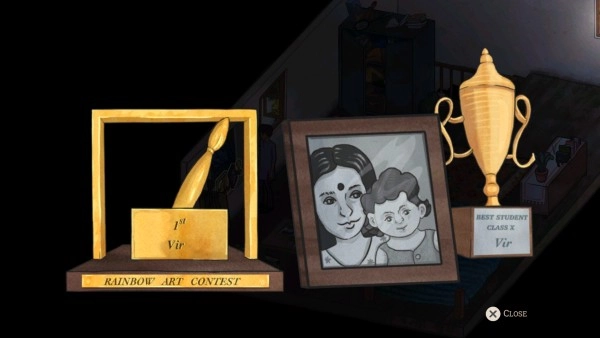 进入游戏剧情后,在房间内展开探索,发现床头摆放着一张小时候与妈妈的合影。