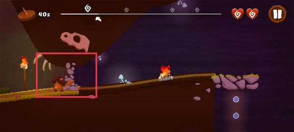 当碰到这类阻碍你前行的障碍物时,只需点击左侧屏幕,让角色挥动手中的棒槌就能打通道路了。