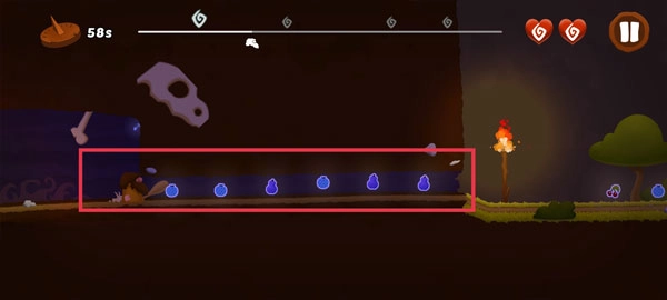 遇到这种通道时,需要用右手手指向下滑动屏幕,让角色贴近地面,这样就能顺利滑过去了。