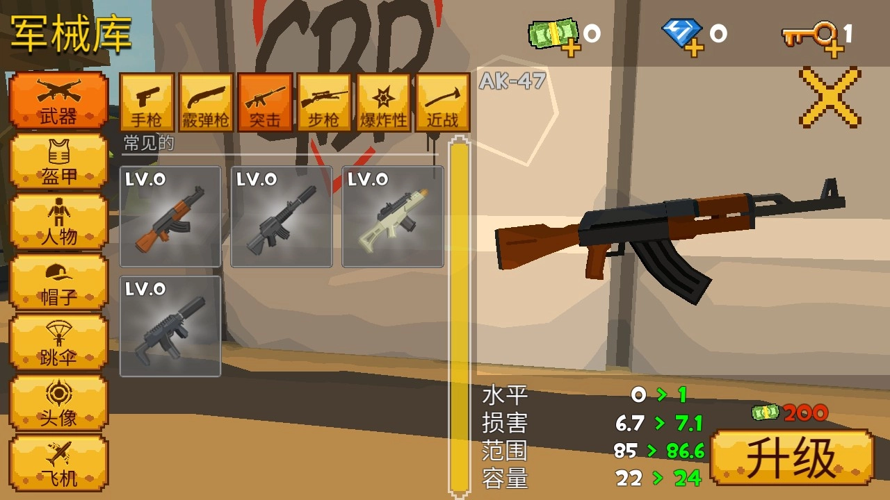 4、武器装备支持升级操作,升级后能够增强伤害输出并扩大弹夹容量。