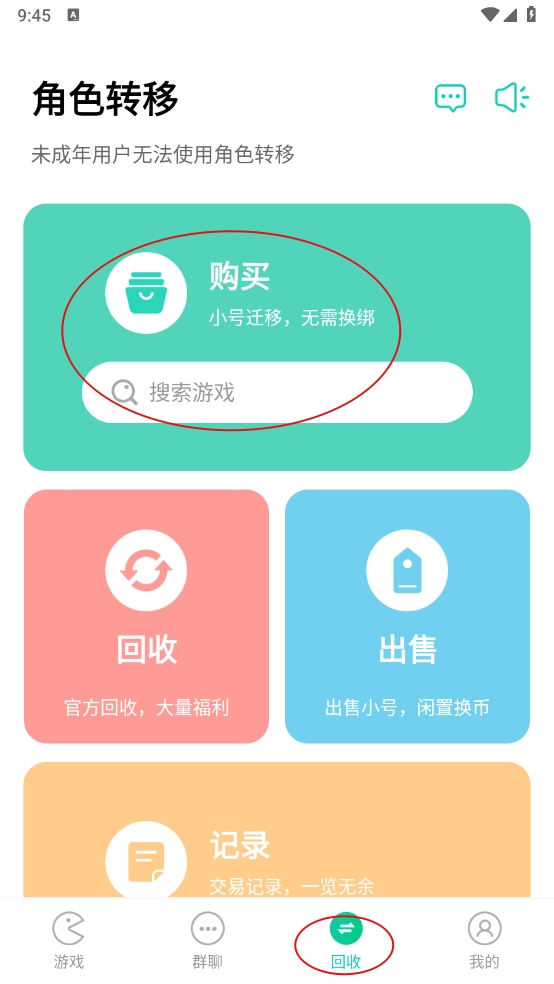 2、点击"回收"进入,然后选择购买。