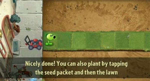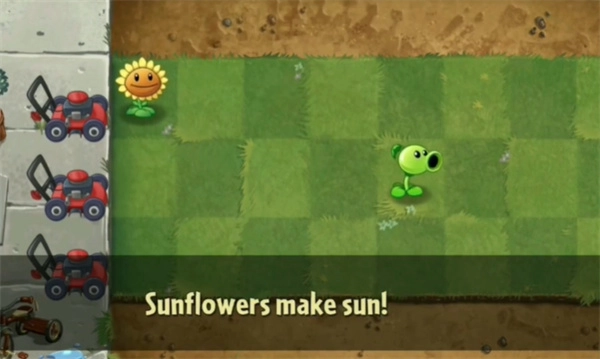 首次进入游戏时,会触发一段新手教程,只需简单点击几次,就能开启闯关模式。进入关卡后,首先要种植豌豆射手,每次种植需要消耗100点阳光。