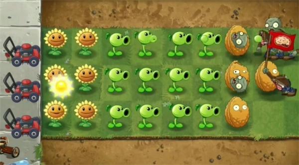 5、而且还可以在最前面种上坚果,这样就能有效阻挡住大量僵尸的攻击了,毕竟坚果的血量相当厚实。