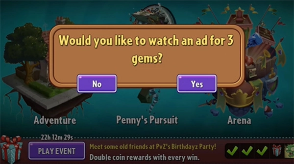 玩家可通过观看广告获取钻石,不过每日仅限观看三次,每次能得到3颗钻石。
