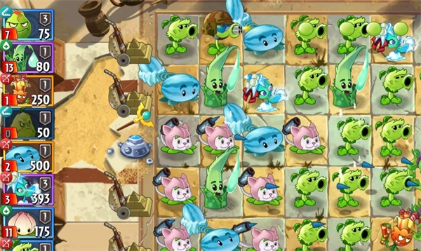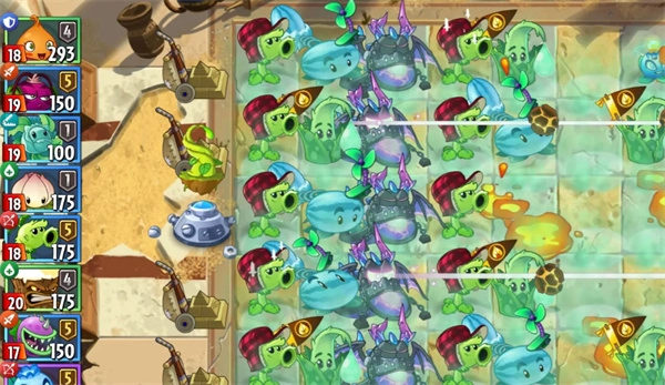 2、持续种植植物,力求构建起坚固的防御体系,如此便能快速消灭僵尸,整个战斗过程均为自动进行。