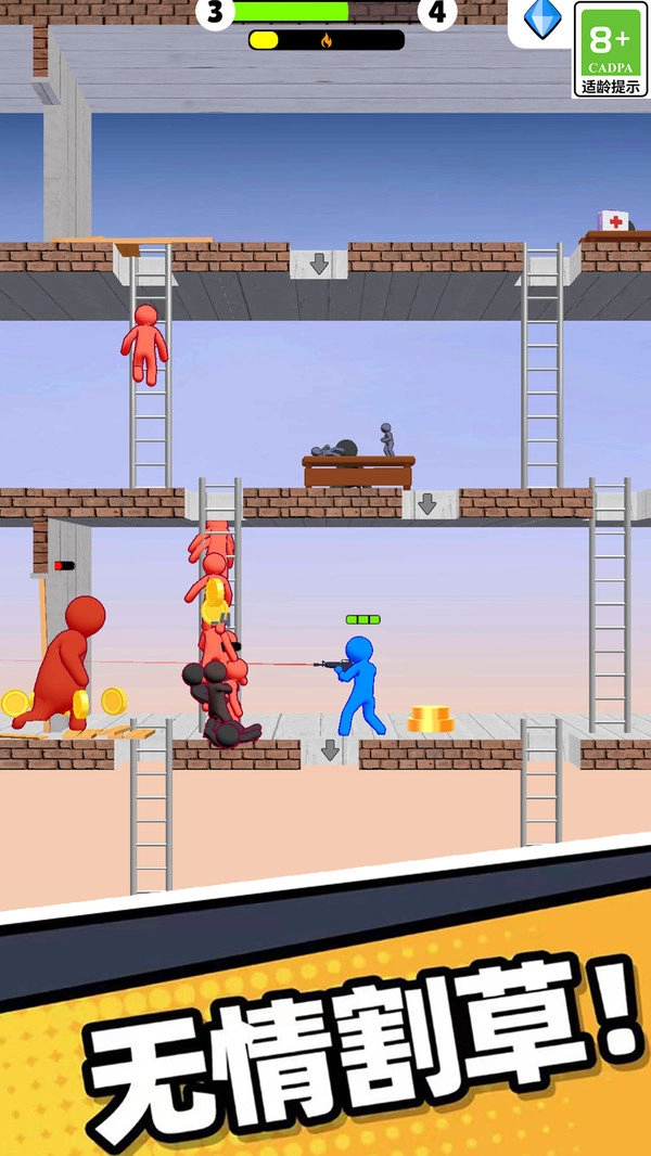 2、流畅的操作体验:游戏操作简单直观,玩家仅需借助屏幕上的虚拟按钮,就能实现对角色移动与射击的控制。凭借响应灵敏的触控系统以及精准的操作设计,玩家可以更轻松地战胜敌人、完成任务。
