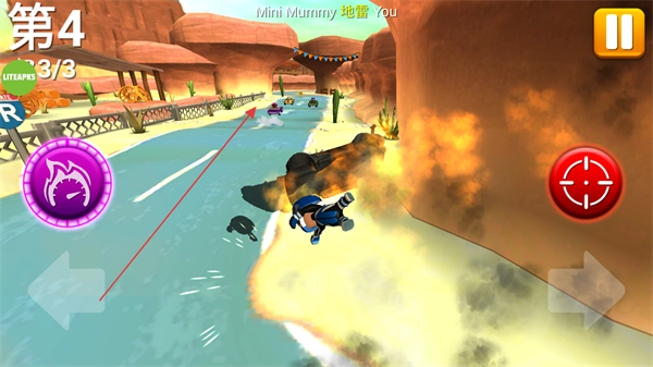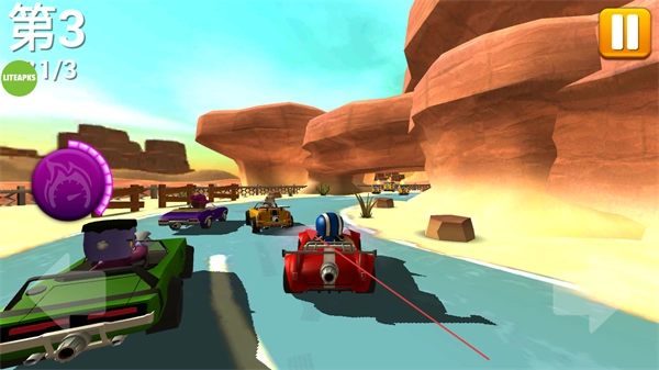 2、运用道具对对手发起攻击,同时避开各种障碍物与爆炸区域,确保赛车能够持续行驶。