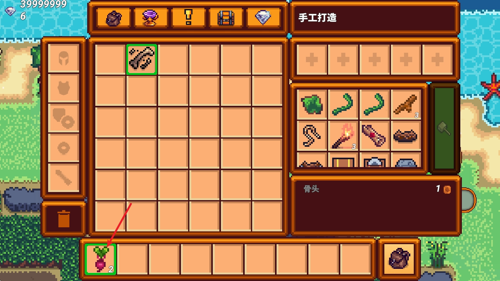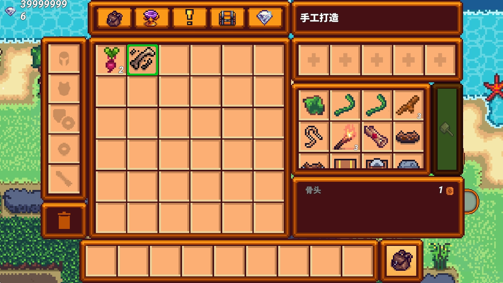 7、背包右侧还可以利用材料来制作各种工具。