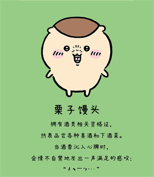 6、栗子馒头:喜欢品尝各种美酒,以及下酒菜。