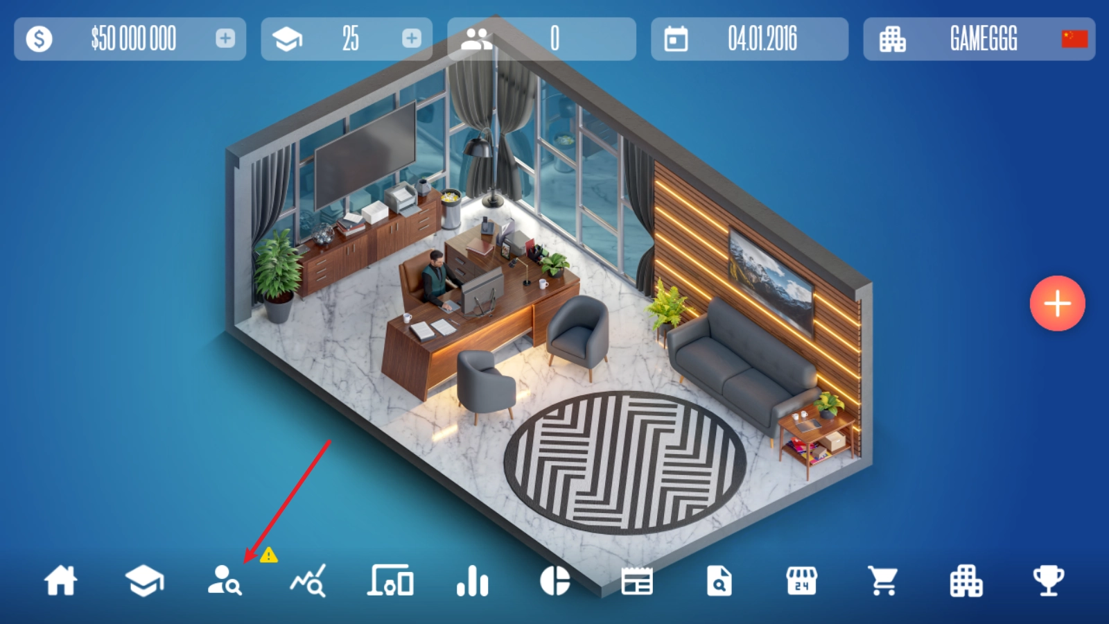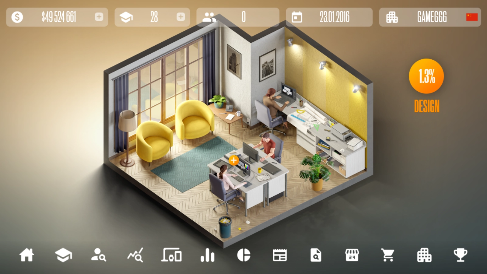 2、持续升级解锁更多员工办公室,就能招募更多设计师与程序员,更高效地完成设计任务!