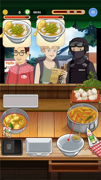 《来碗鸡肉粥》是一款卡通画风的粥铺模拟经营游戏。游戏的核心玩法是用心接待每位顾客,用最快速度烹制出美味的粥品,顾客满意付款后,你就完成了一次服务挑战!在游戏里,你可以挑选心仪的店铺位置和装修风格,还得负责购置设备、招聘员工、采购食材。你要根据不同顾客的口味需求制作对应的粥品,也能通过营销推广和投放广告来提高店铺的知名度和口碑。