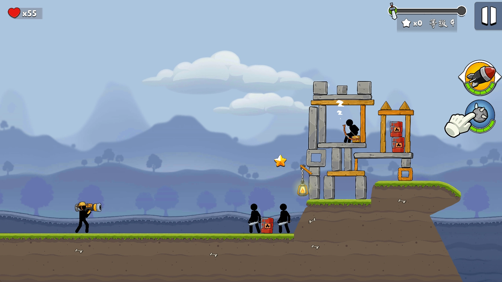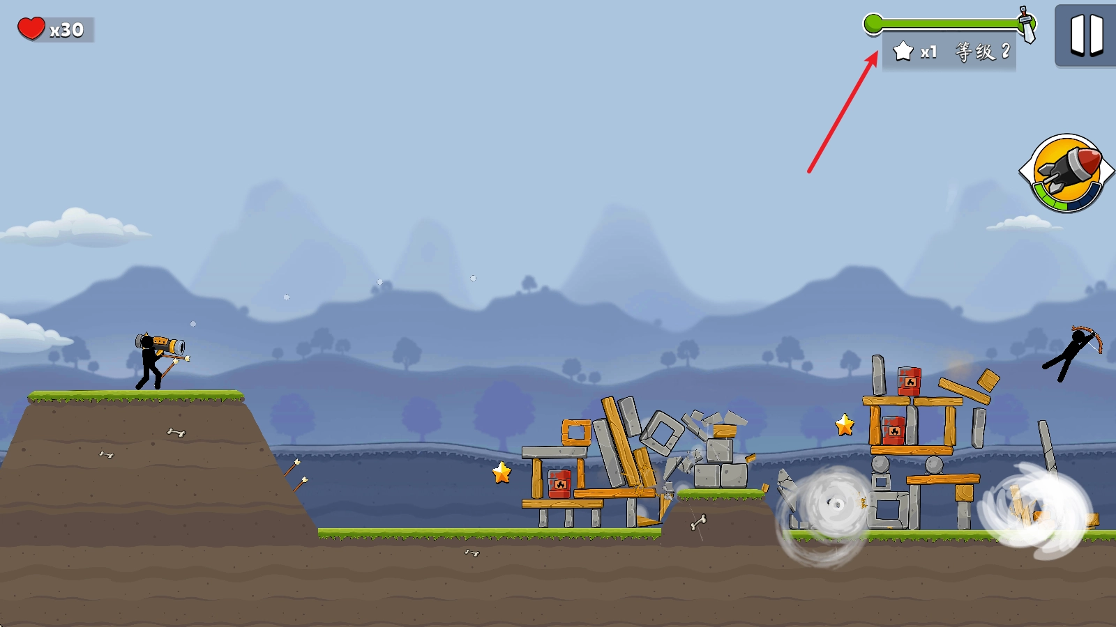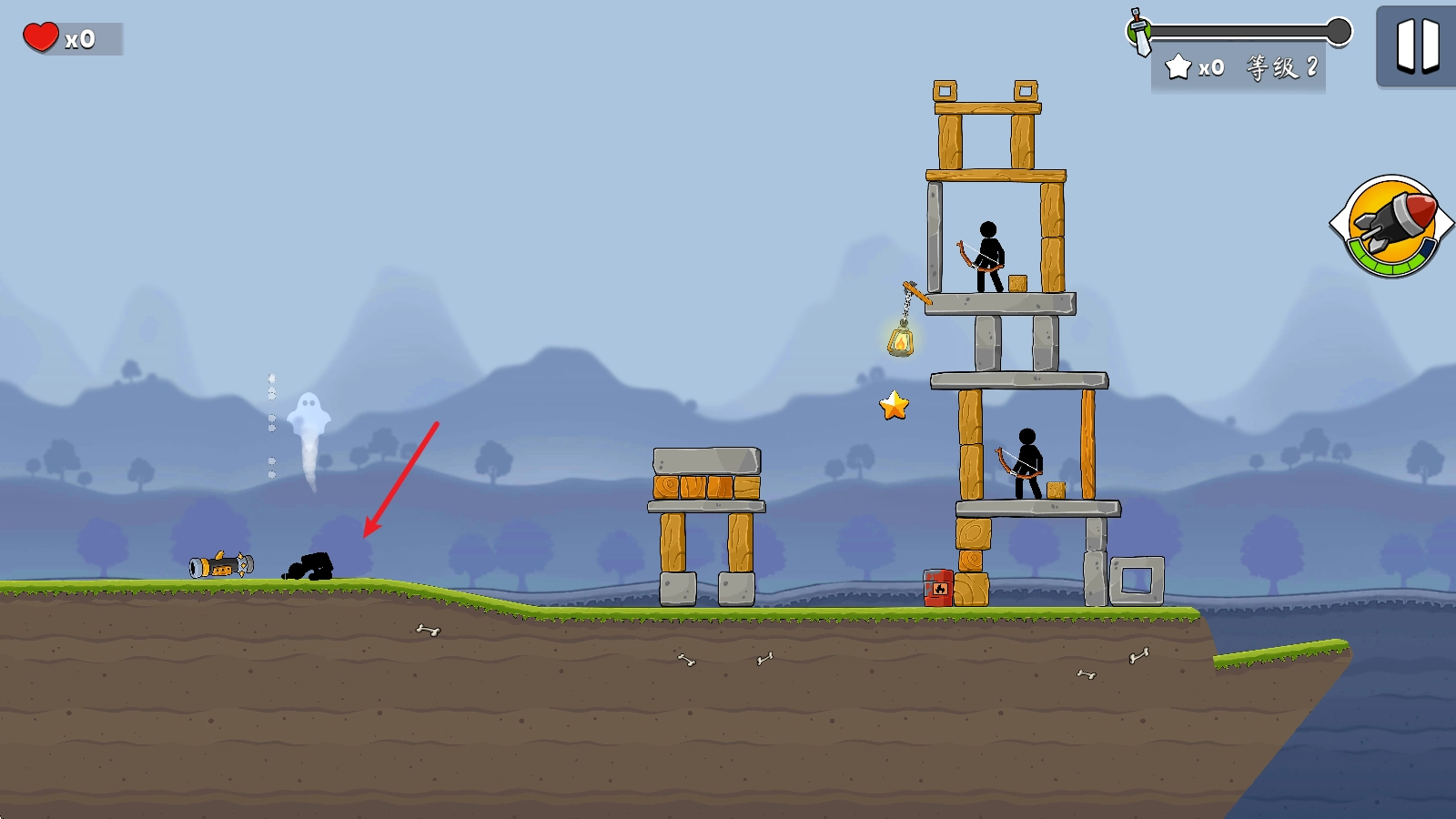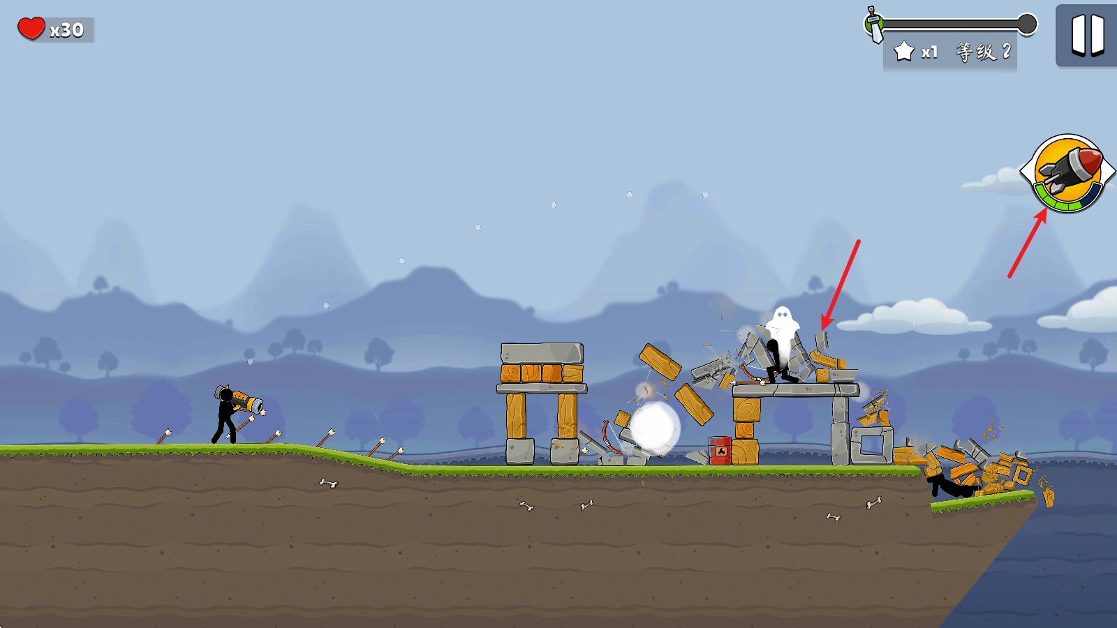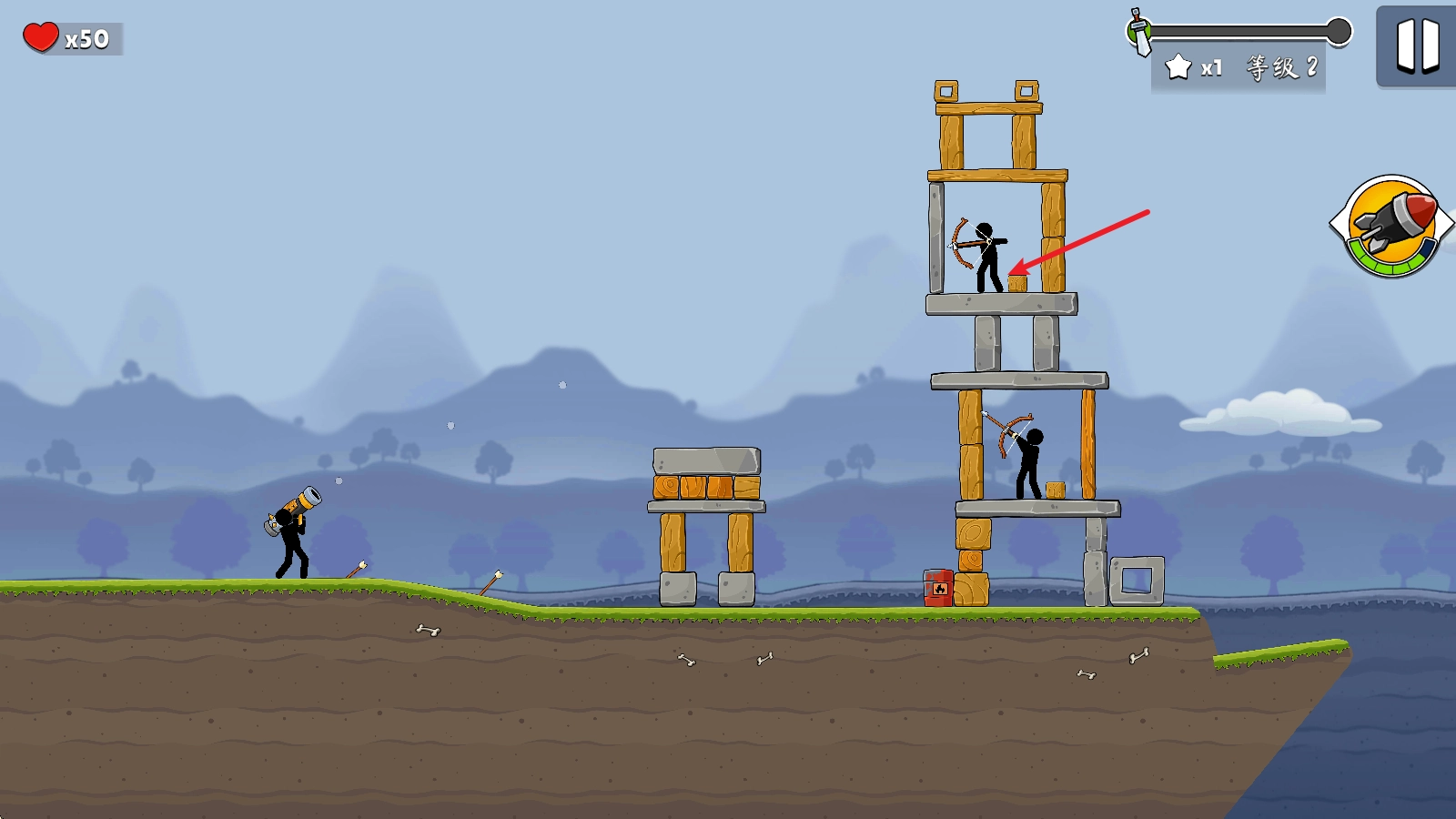 2、松开手后炮弹便会发射,只要击中塔楼或敌人就会爆炸。