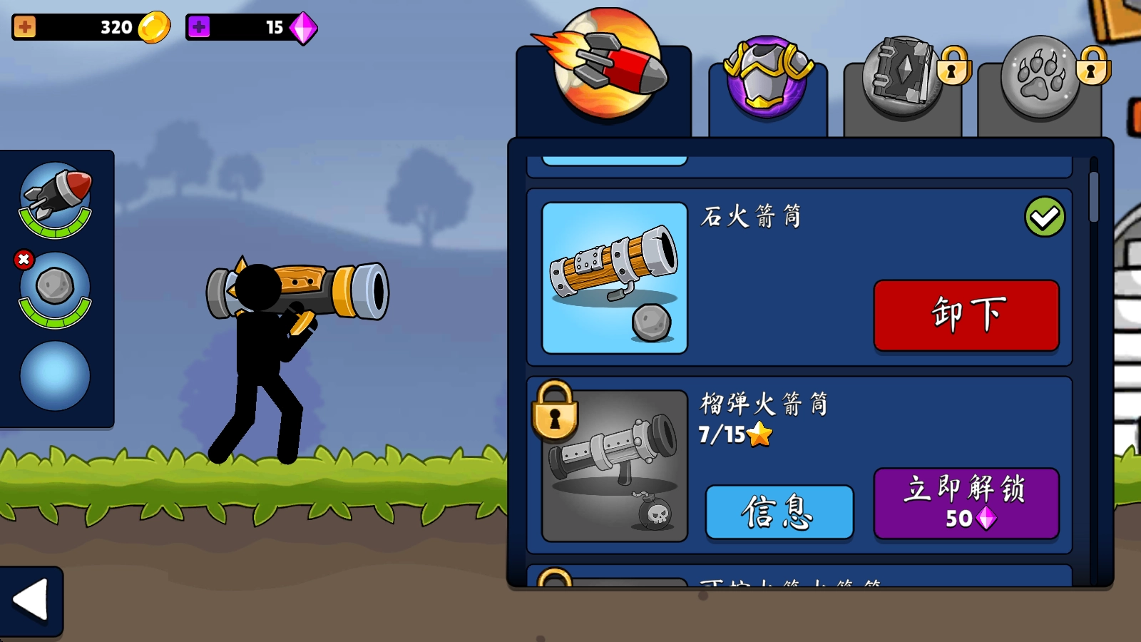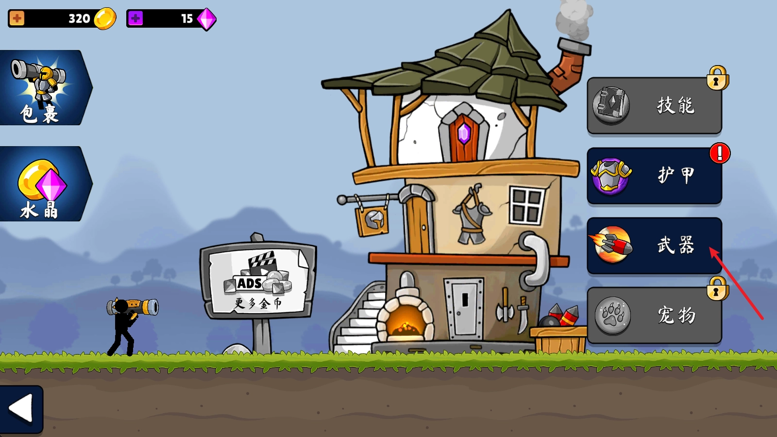 3、在这里可以购买新武器并装备上。