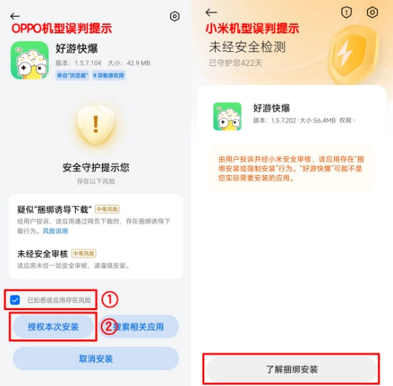 OPPO、小米/红米机型安装好游快爆时,若出现“捆绑”情况的解决办法