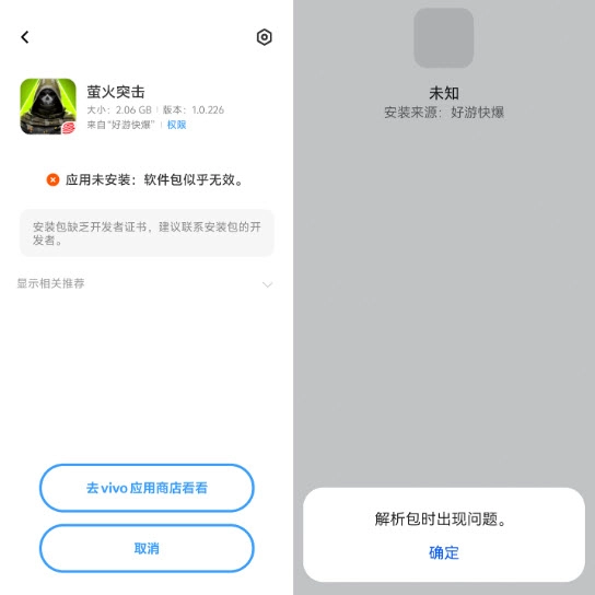 ③要是出现解析失败的提示,建议先删除之前的安装包,再到好游快爆里重新完整地安装游戏。