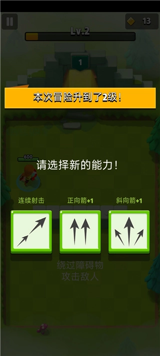 进入关卡后,通过移动摇杆操控角色;当角色遭遇怪物时,会自动射出弓箭展开攻击。