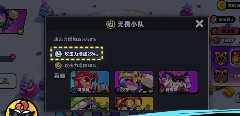 5、在队伍根基稳固后,我们就需要着手完善羁绊体系了。这其中有两个角色起着至关重要的作用,一个是莫提斯,另一个则是野蛮人之王。莫提斯的技能效果能够让队伍的规模得到进一步扩充,而且当无畏小队的羁绊达成后,还能使队伍的攻击力得到显著提升。