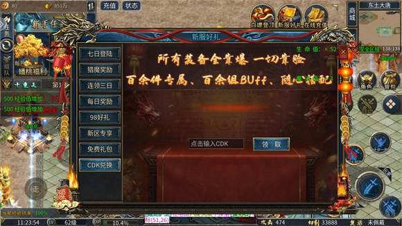 使用方法:在游戏里找到“新服好礼”入口点击进入,接着选择“CDK兑换”选项,把礼包码准确输入到兑换框后,点击“领取”按钮即可完成兑换。