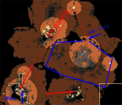 11、破碎火山:第十一关,此关敌人仅会派出T1空军单位,且只有一个进攻路径。由于周围环绕岩浆海,防守难度较高,只能依靠单位进行防御,因此建议直接在敌人家门口(蓝框空缺位置)布防,之后前往其他岛屿建造T2空军单位即可。敌方防御能力较强,配备有修复装置、钨炮台以及扩散炮台。由于处于敌方核心禁止建造区域,这关只能采用类似驱离的战术来对付扩散炮台和撕裂炮台,逐步推进即可,一次进攻不奏效就多次尝试,慢慢消耗总能击败敌人。