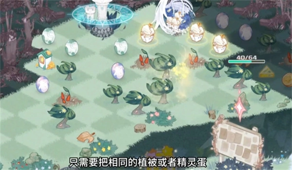 2、只要集齐3个相同的植被或精灵蛋,它们就会自动合成,借助这些合成物可以建造精灵所需的房屋或家具。