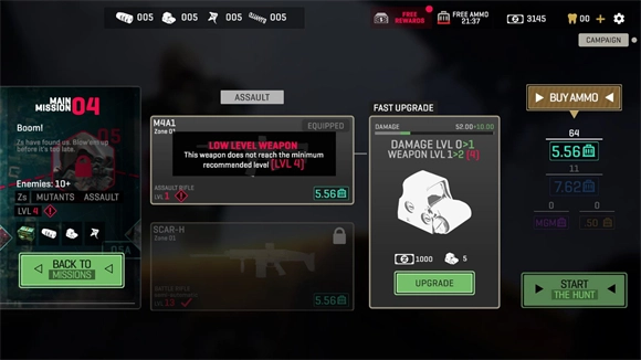 2、选择关卡后可以消耗材料给自己的武器升级。