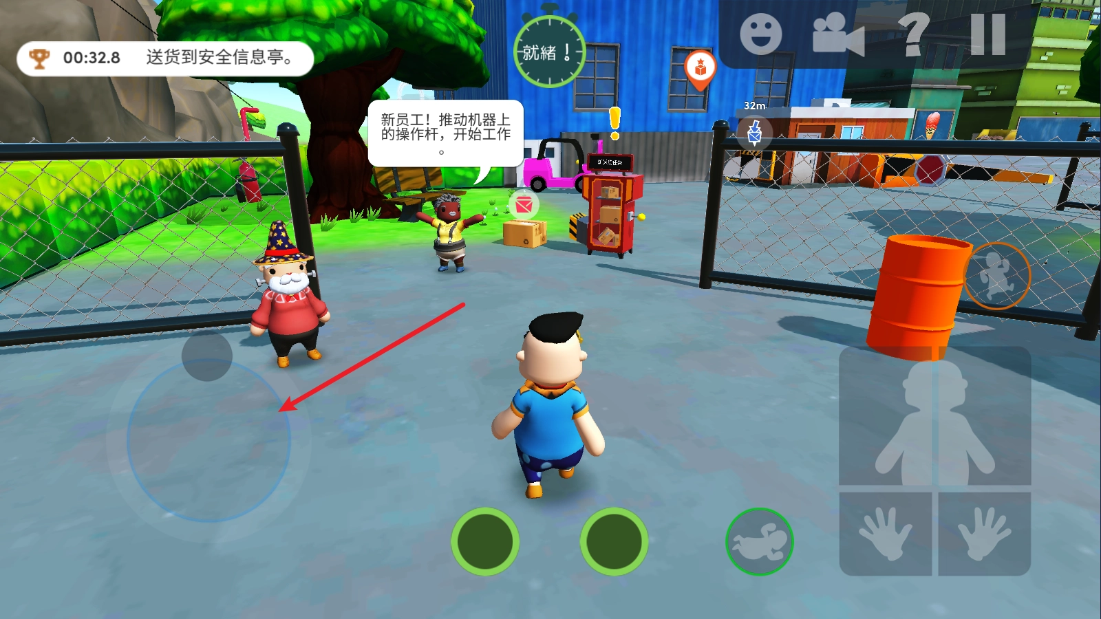 1、进入游戏后,左侧摇杆就能控制人物移动。