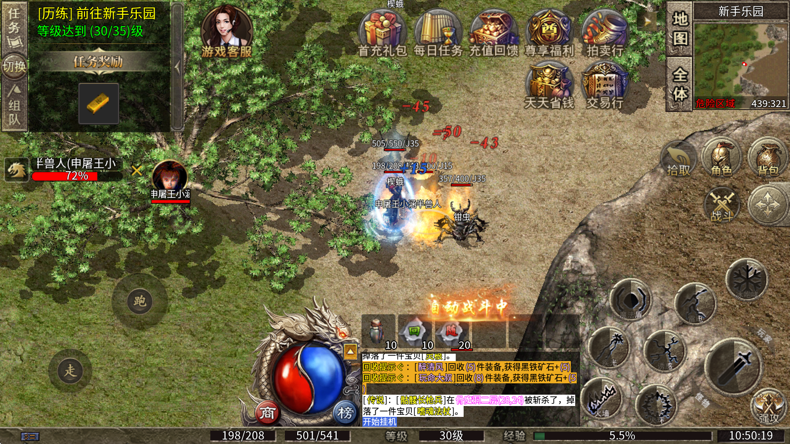 4、本服务器设有三处专门的练级地图,这些地图里的怪物分布密集,刷新频率也比其他地图更快。地图等级越高,里面怪物提供的经验值就越丰厚,推荐玩家组队升级,尤其是搭配法师一起,练级效率会更出色。