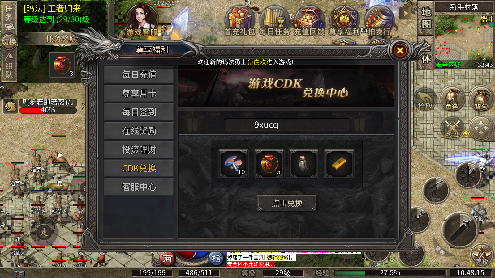 兑换方式:点击上方的“尊享福利”,再点击“CDK兑换”,输入礼包码就能完成兑换啦。
