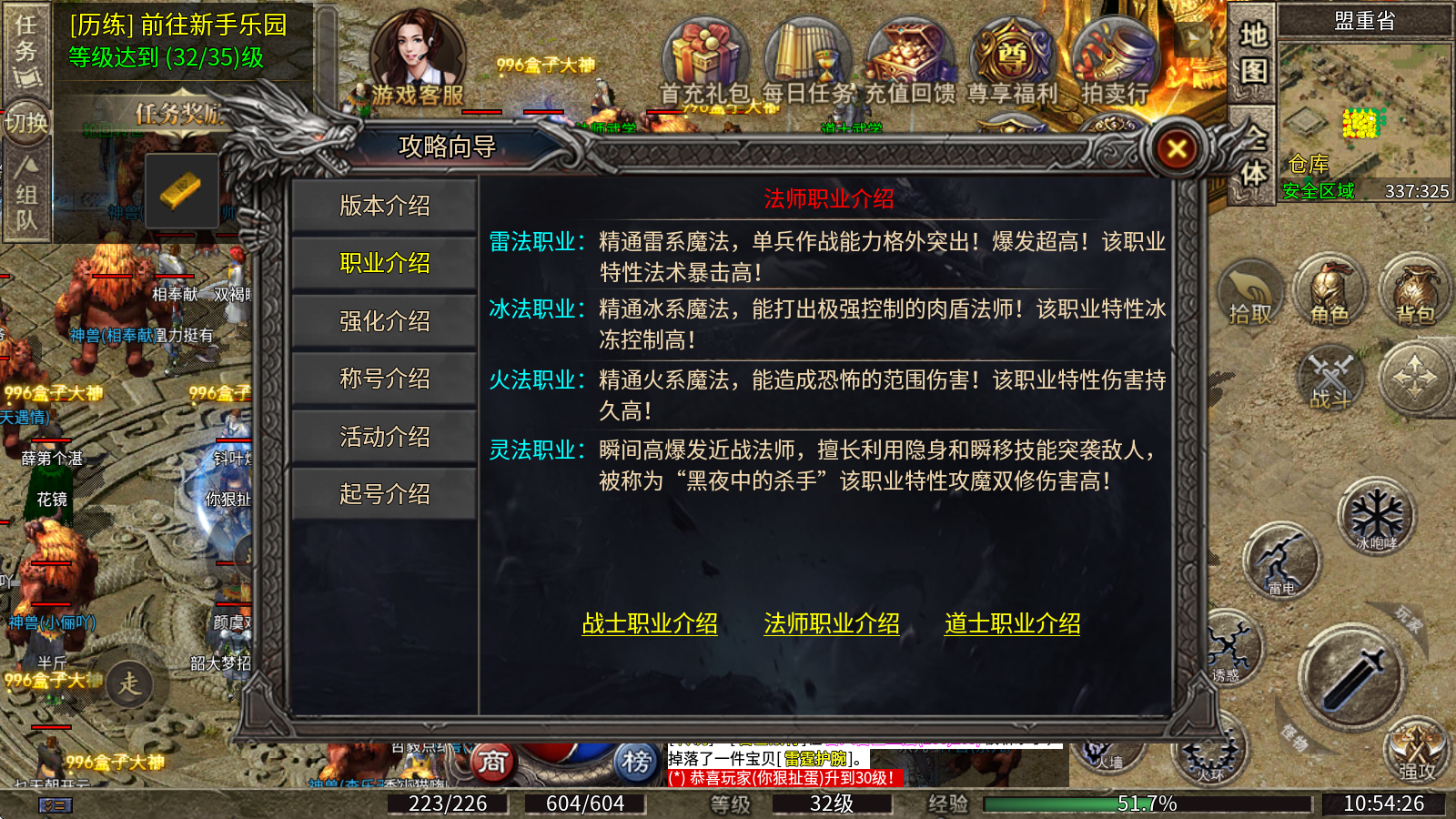 1、雷法职业:擅长雷系魔法,单人作战表现尤为出色,爆发力极强!该职业的显著特点是法术暴击率很高!