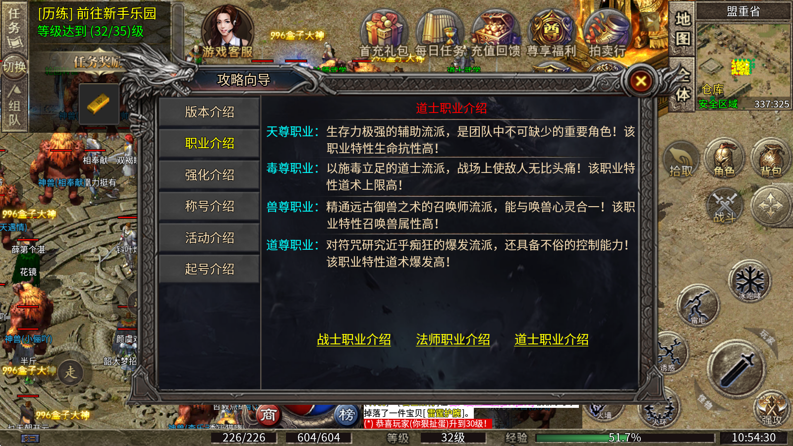 4、道尊职业:痴迷于符咒研究的爆发型流派,同时拥有出色的控制能力!此职业的特性是道术爆发伤害极高!