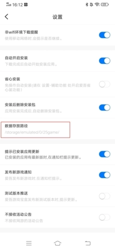 2、进入设置页面后,就能看到数据存放路径,如图所示,下方显示的就是具体的存储路径。