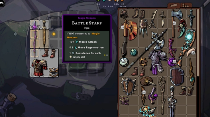 6、探索途中会随机冒出各式各样的宝箱,打开宝箱后能得到随机的装备,这些装备可放进背包以增强你的属性。