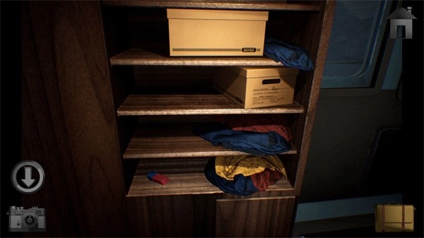 7、到达目的地后,点击床铺休息,醒来时突然看到床边有一道黑影闪过。打开船用柜子,找到一块橡皮擦。