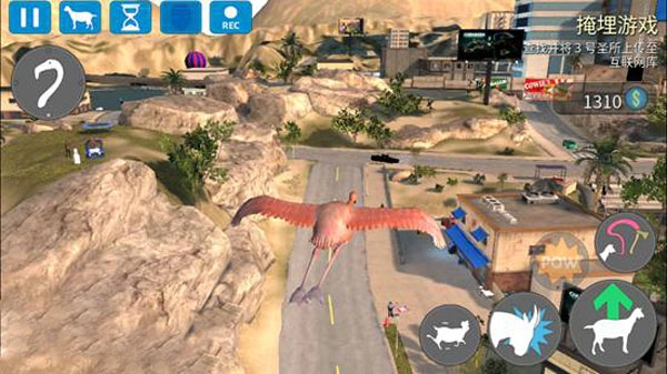 2、进入游戏后,你能够操控山羊以及其他各种动物伙伴,在城市里不受限制地自由行动。
