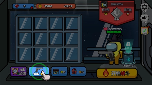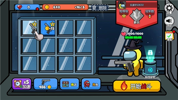 1、进入太空大逃杀游戏,可通过购买武器增强自身的战斗能力;