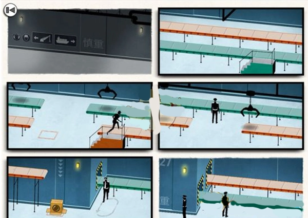本章是整个游戏里难度最高的部分,需要玩家灵活借助纸箱的掩护来穿过传送带系统。核心要点是把箱子放到红色传送带上,同时角色踏上绿色传送带,这样就能达成同步移动,进而顺利通关。
