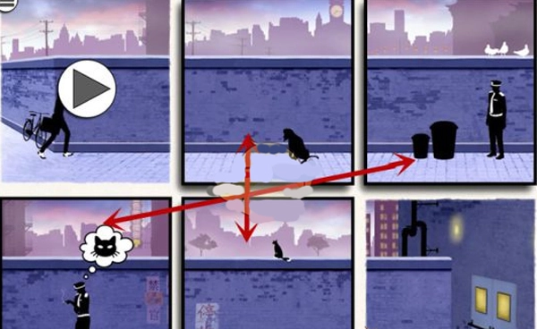 和上一章节比起来,难度有了一定提升。除了基础的画面切换操作外,还得完成角色与道具之间的互换。运用猫咪来吸引敌人的注意力,再依靠自行车达成通关,是这一章节的核心要点。